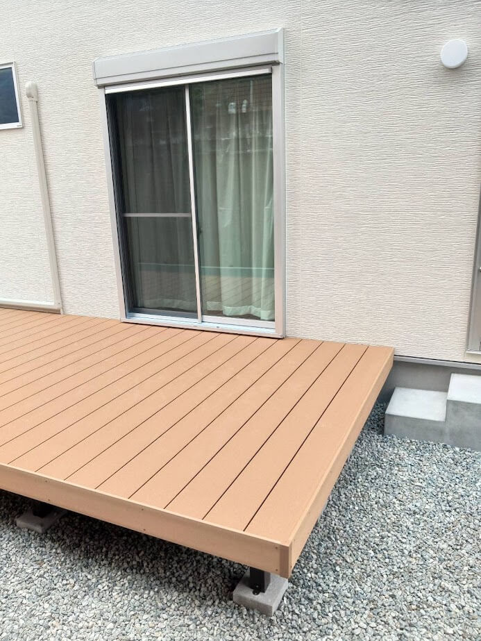 掃き出し窓の前には、大きなウッドデッキも施工。