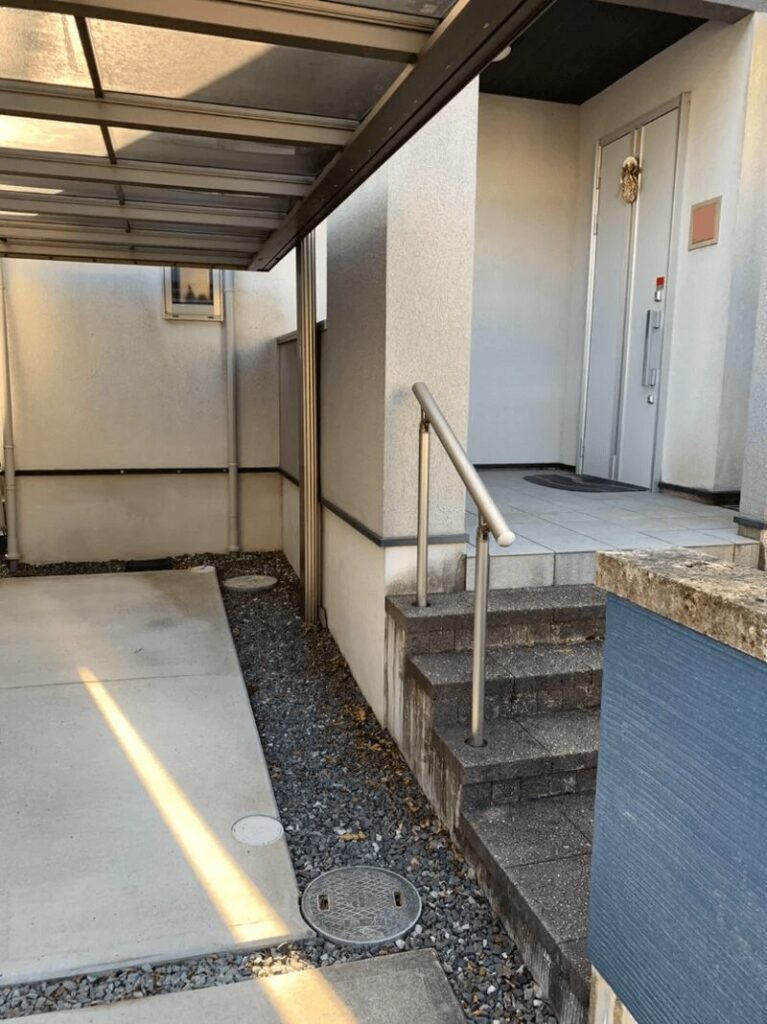 外からの見え方を調整しつつ、空間の区切りがはっきりすることで、玄関まわりの印象もすっきりとしました。