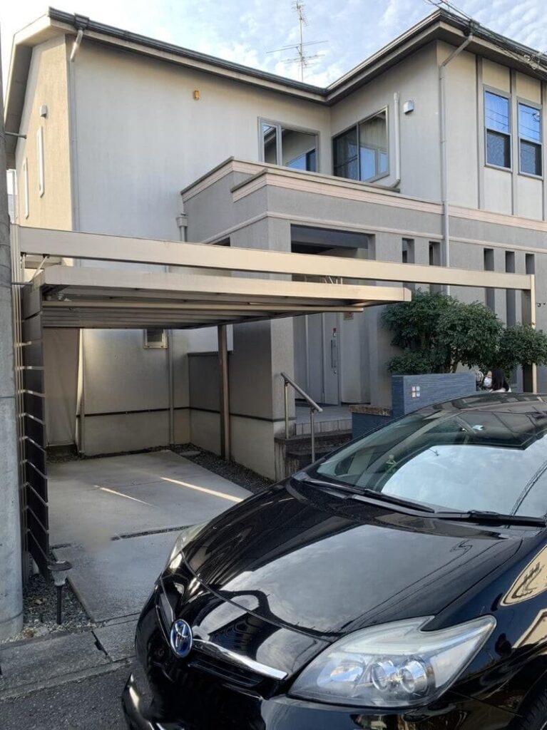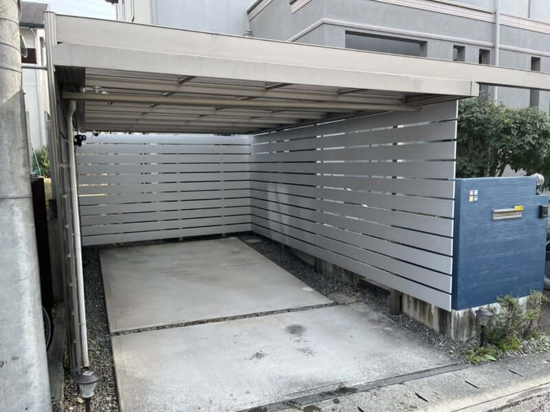 既存のカーポートに、横張りの板材を使って目隠しフェンスを施工しました。